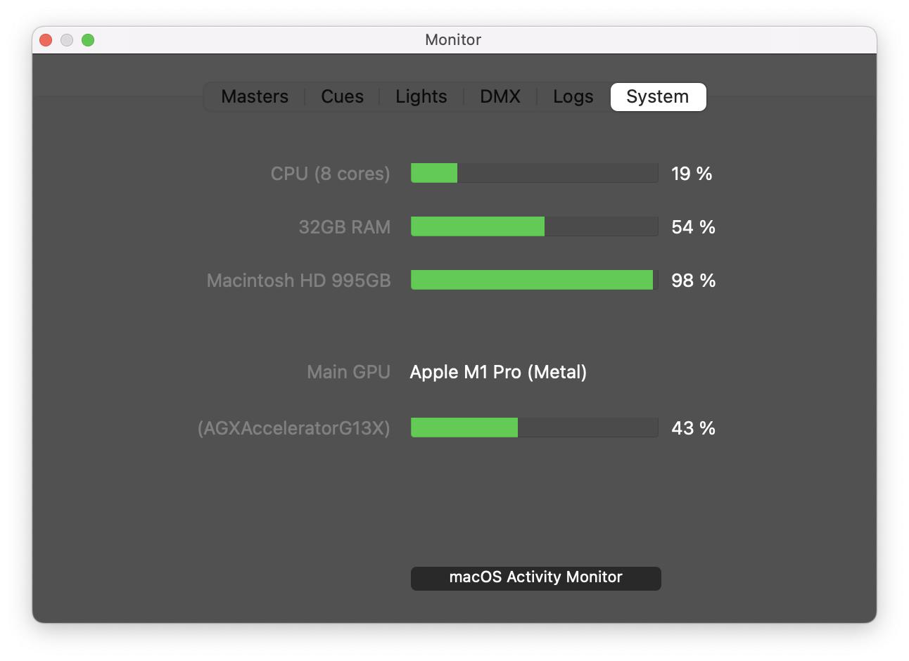 The Monitor is designed to provide some global controls for your project, as well understanding how the data flows. You can open it from the menubar Window.