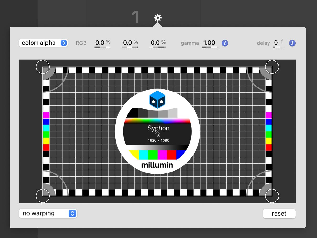 Depending on the color-depth chosen in Preferences, Millumin will output to 8-bit RGBA or 10-bit RGB pixel-format.