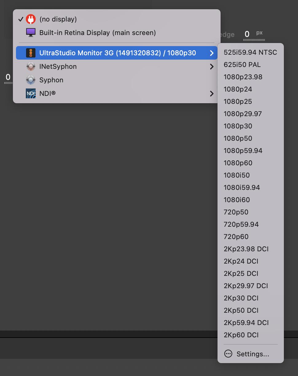 As for Blackmagic Cards, AJA output devices act as an external display. You need to choose its output format in a submenu.