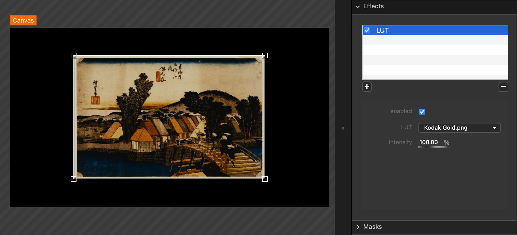 Such files can bePNG,cubeor1dlutfiles. Millumin must be restart after a new LUT has been installed. - intensity: the mix with the original image.