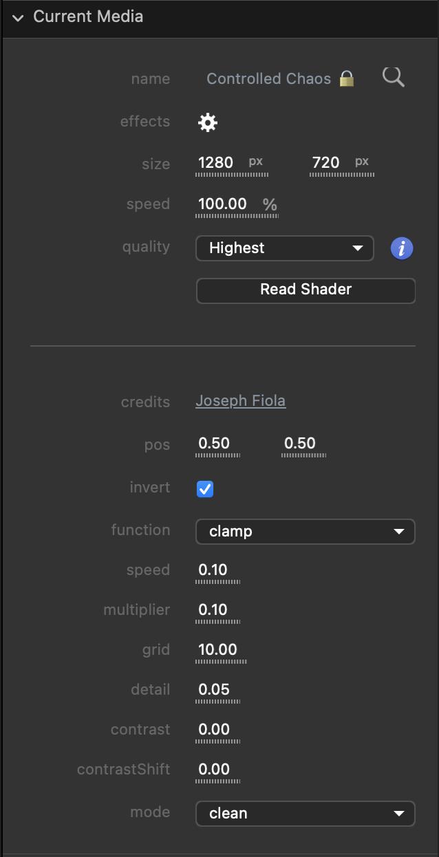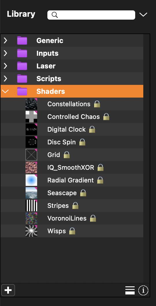 Shaders are little programs executed on the graphic card to generate, compute and modify images. Millumin supports ISF format that is very useful to generate realtime effects.