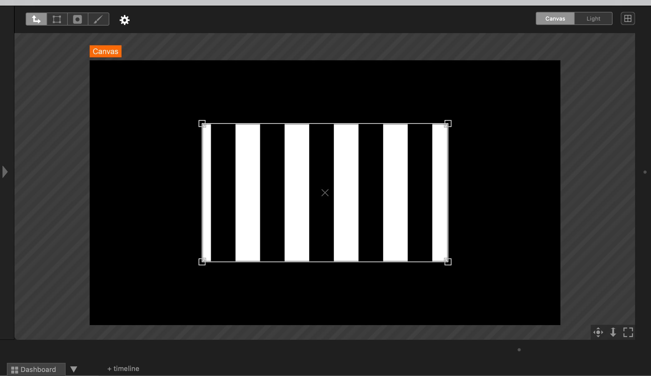 The workspace shows the preview of your content and this is where the layers, media and lights can be manipulated.