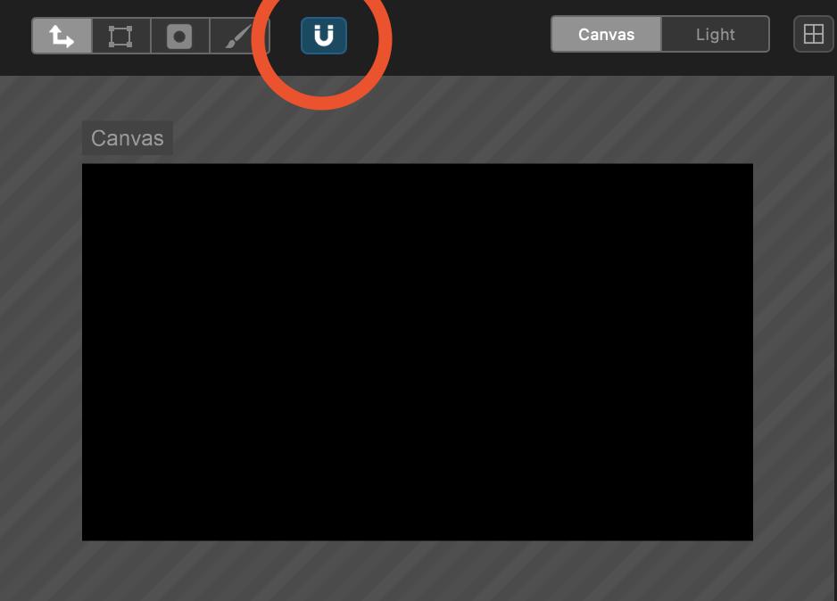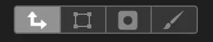 To interact with the content, there are 4 tools located in the top-left corner of the workspace : move, mapping, mask and the brush tool.