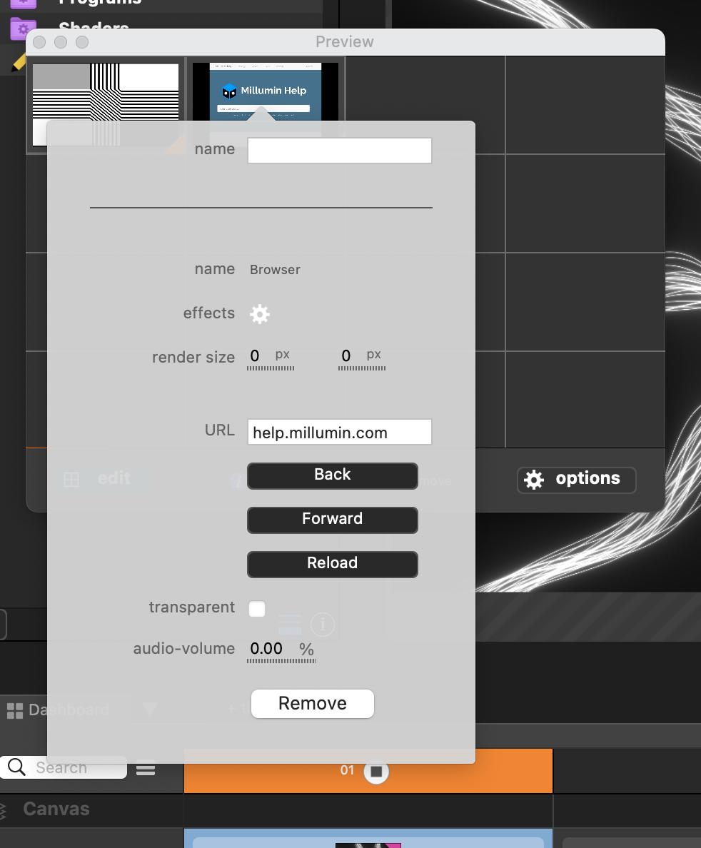 The brush tool allows the mouse to interact with media capable of receiving mouse inputs. For example, the Browser media or some shaders :