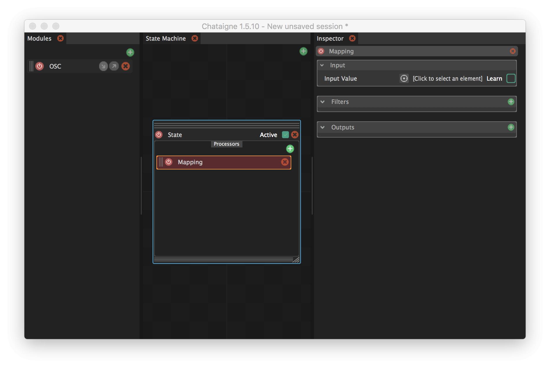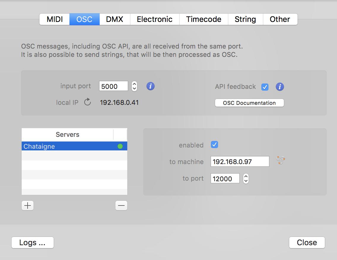 Launch some columns on the main machine : if Chataigne is correctly setup, the OSC icon will blink :