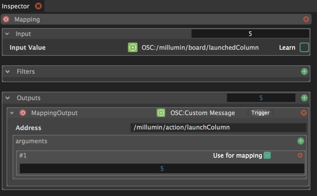 Inputsection, select the elementOSCthen/millumin/board/launchedColumn - in