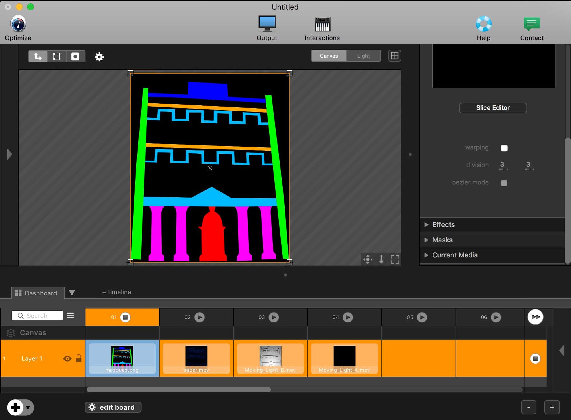 Once your happy with the warping, you can launch the medias in the other columns and see the result :