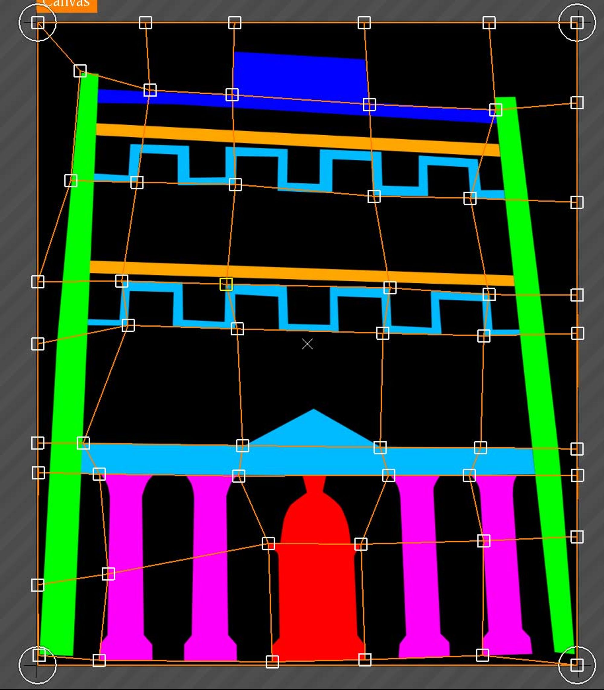 Once that's done and the physical configuration is made, you can start by doing a mapping of the four corners of the image so it roughly fit with the building.
