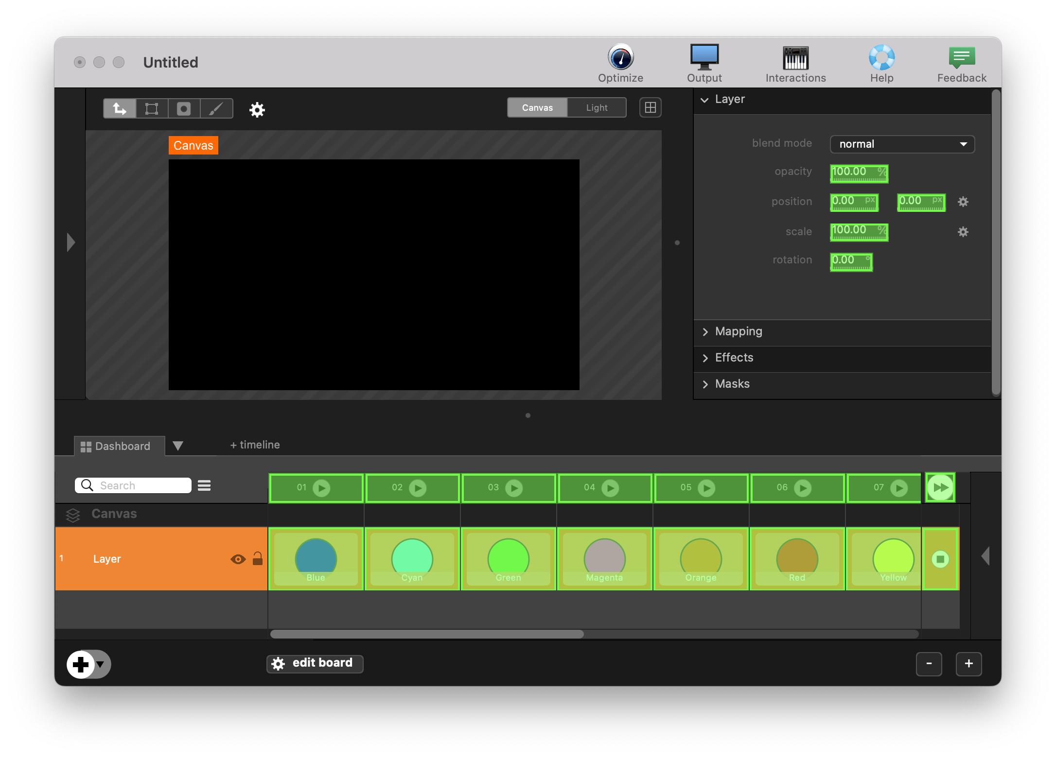 The simpliest way to create an interaction is to click on a highlighted element of Millumin interface, then trigger your input (typing on your keyboard, moving a MIDI fader, sending DMX, …).