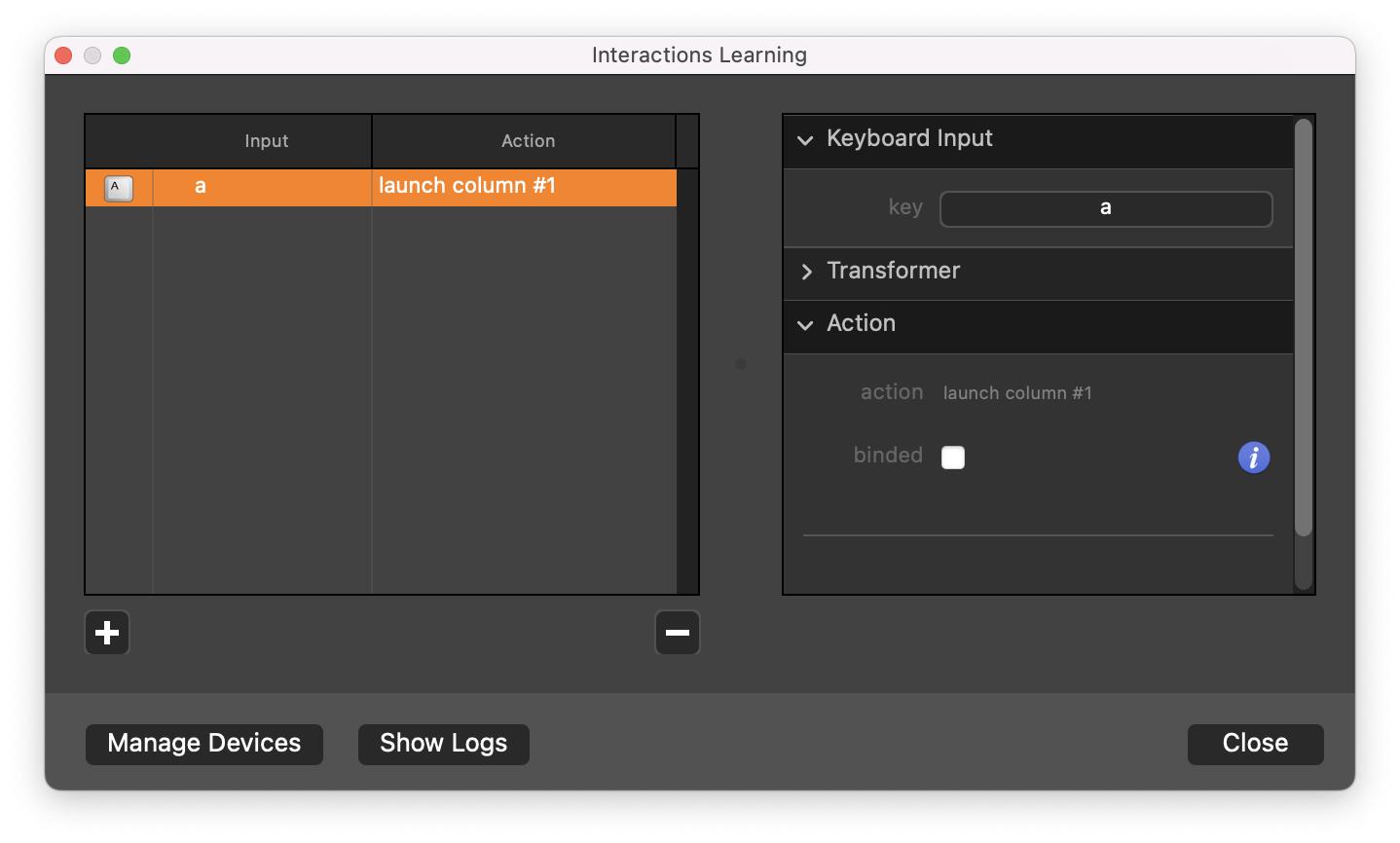 Of course, you may need to set up your device as well to receive correctly the input, and you can do so from the device-panel (CMD+K). More info in this article : Devices