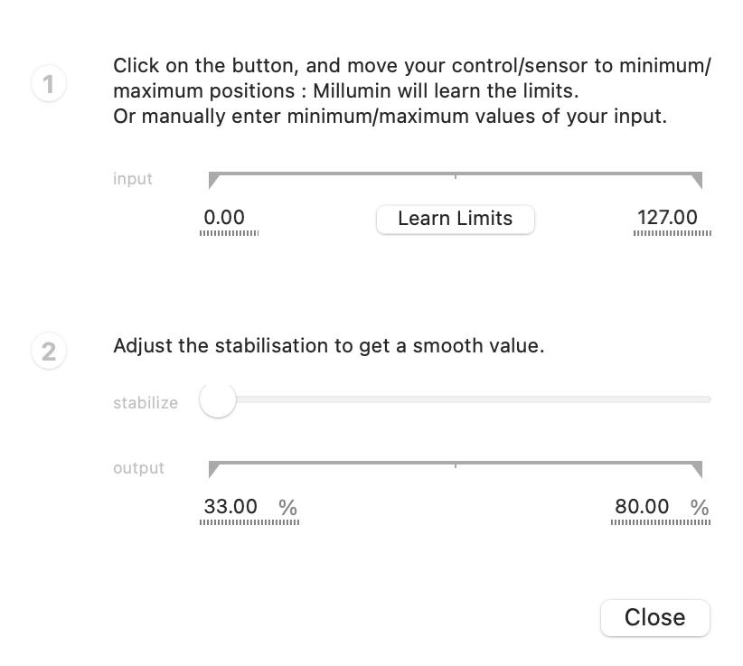 For example, if you want to control the scale of your layer with a MIDI fader, you may want to set the scale at 33% when the fader is at the minimum (0), and at 80% when the fader is at the maximum (127).