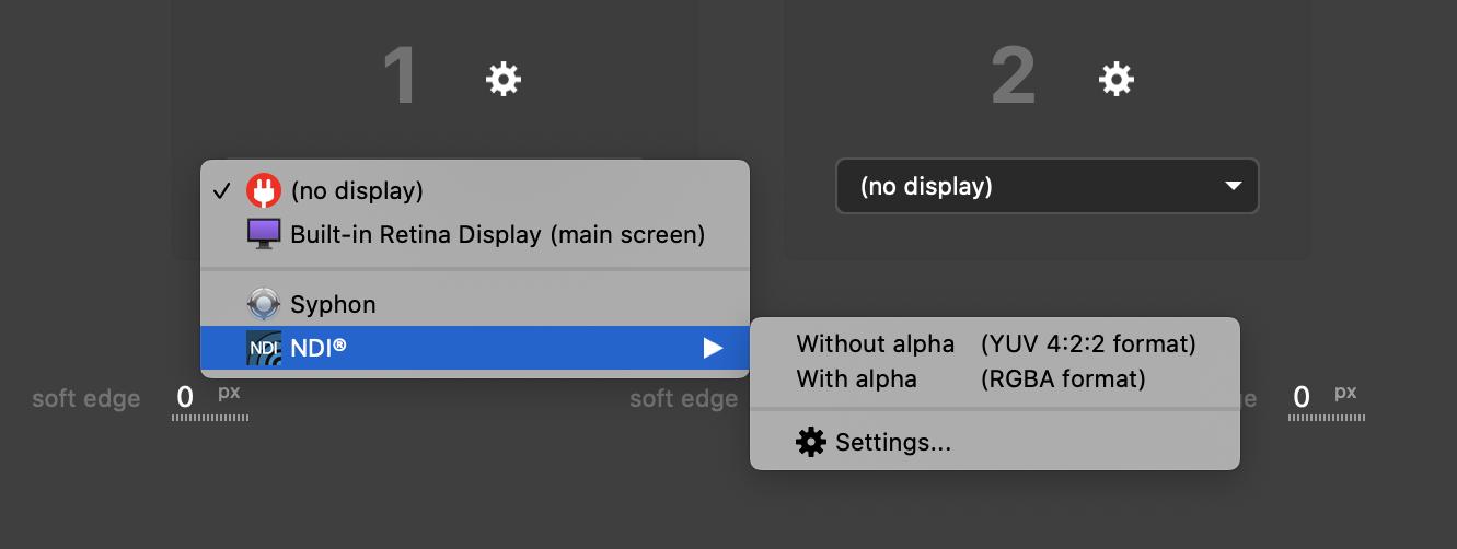 When your mouse is over NDI, a submenu opens to choose the mode :