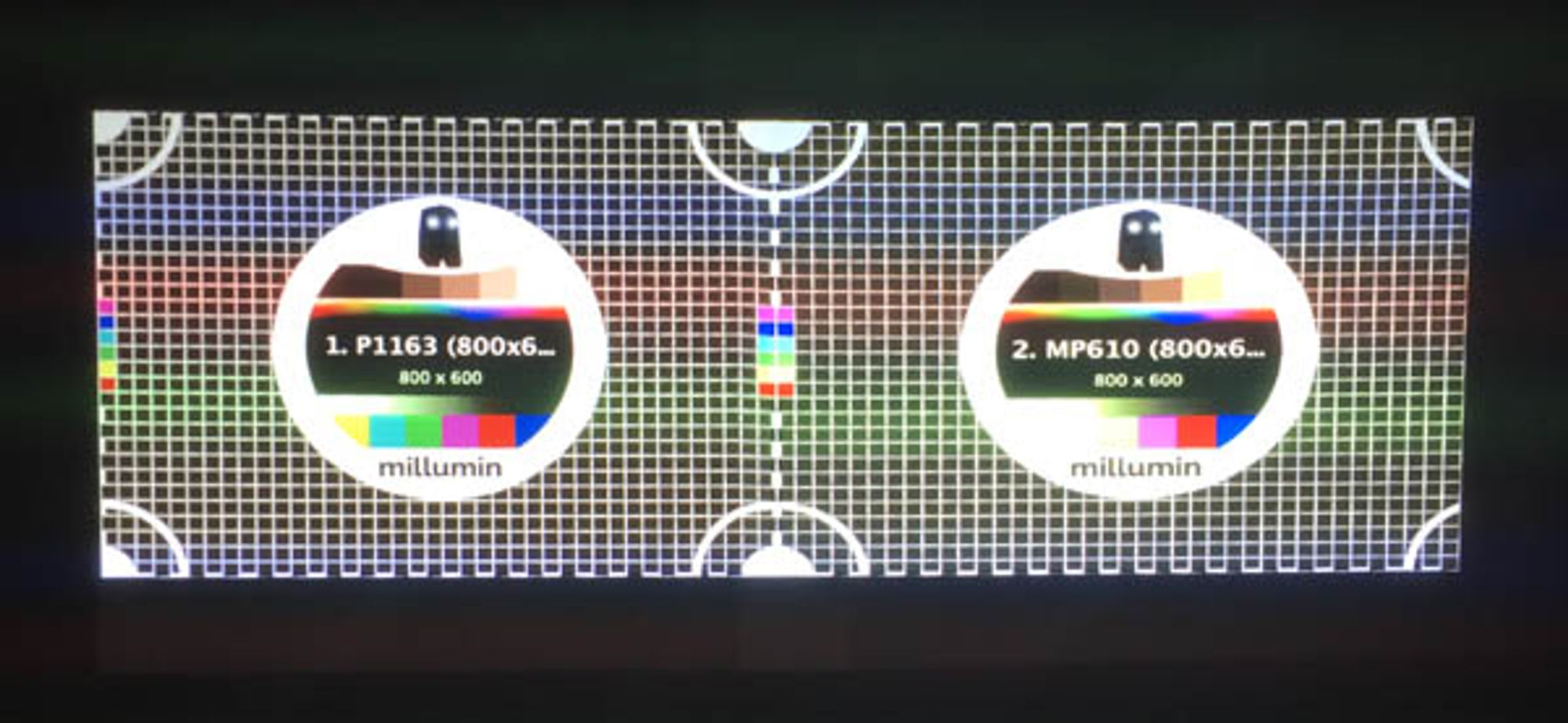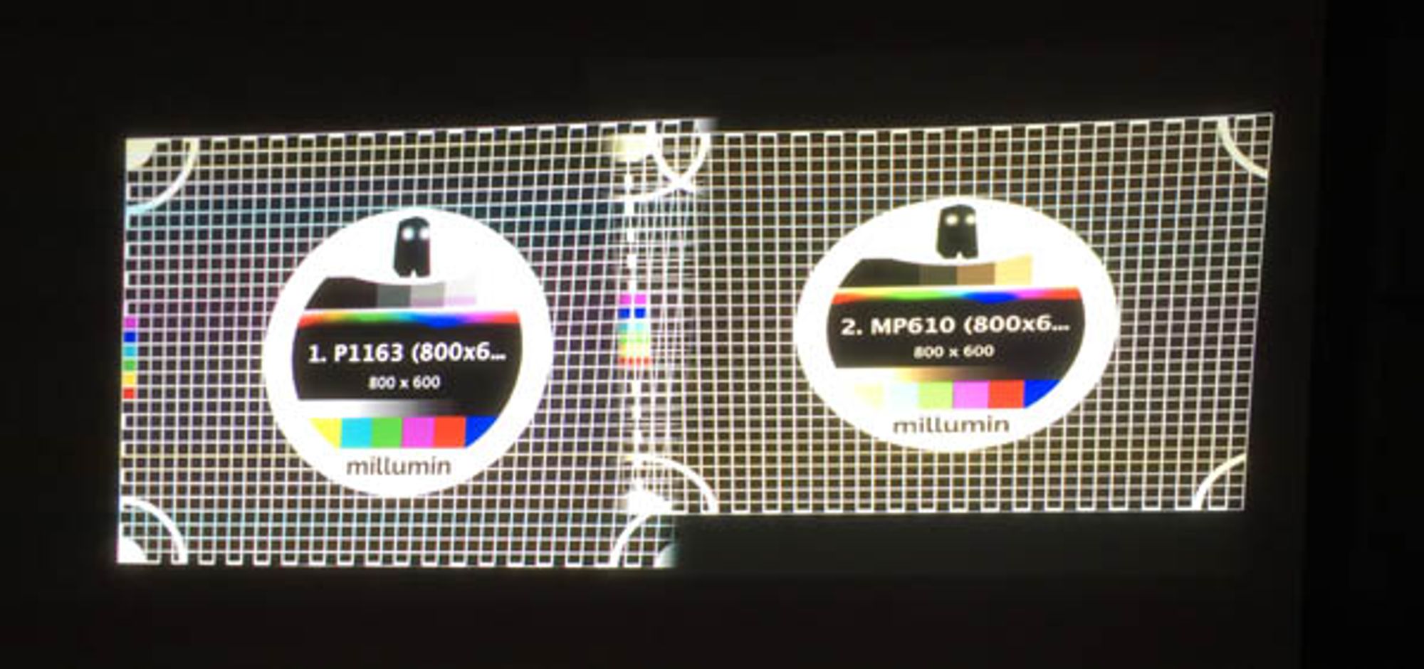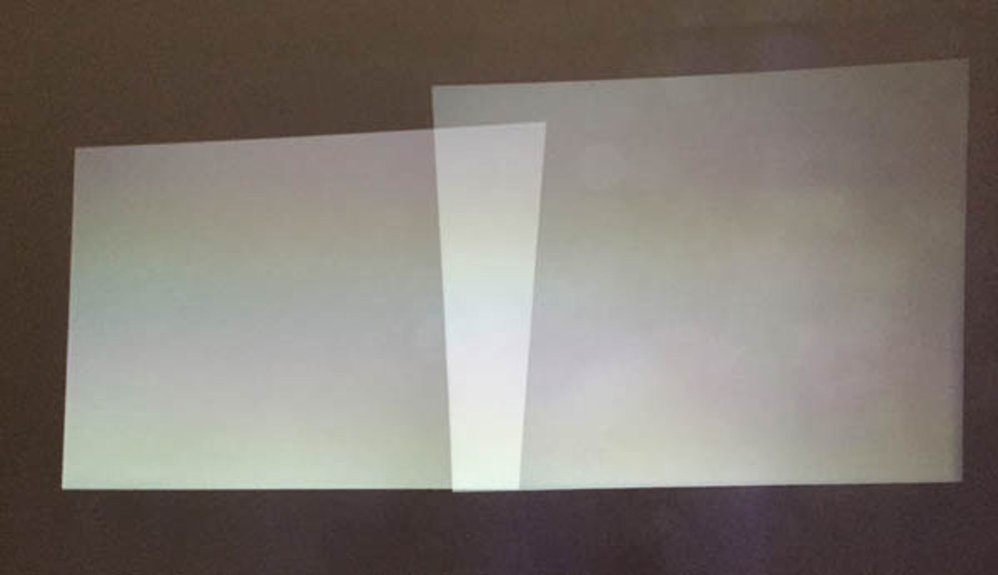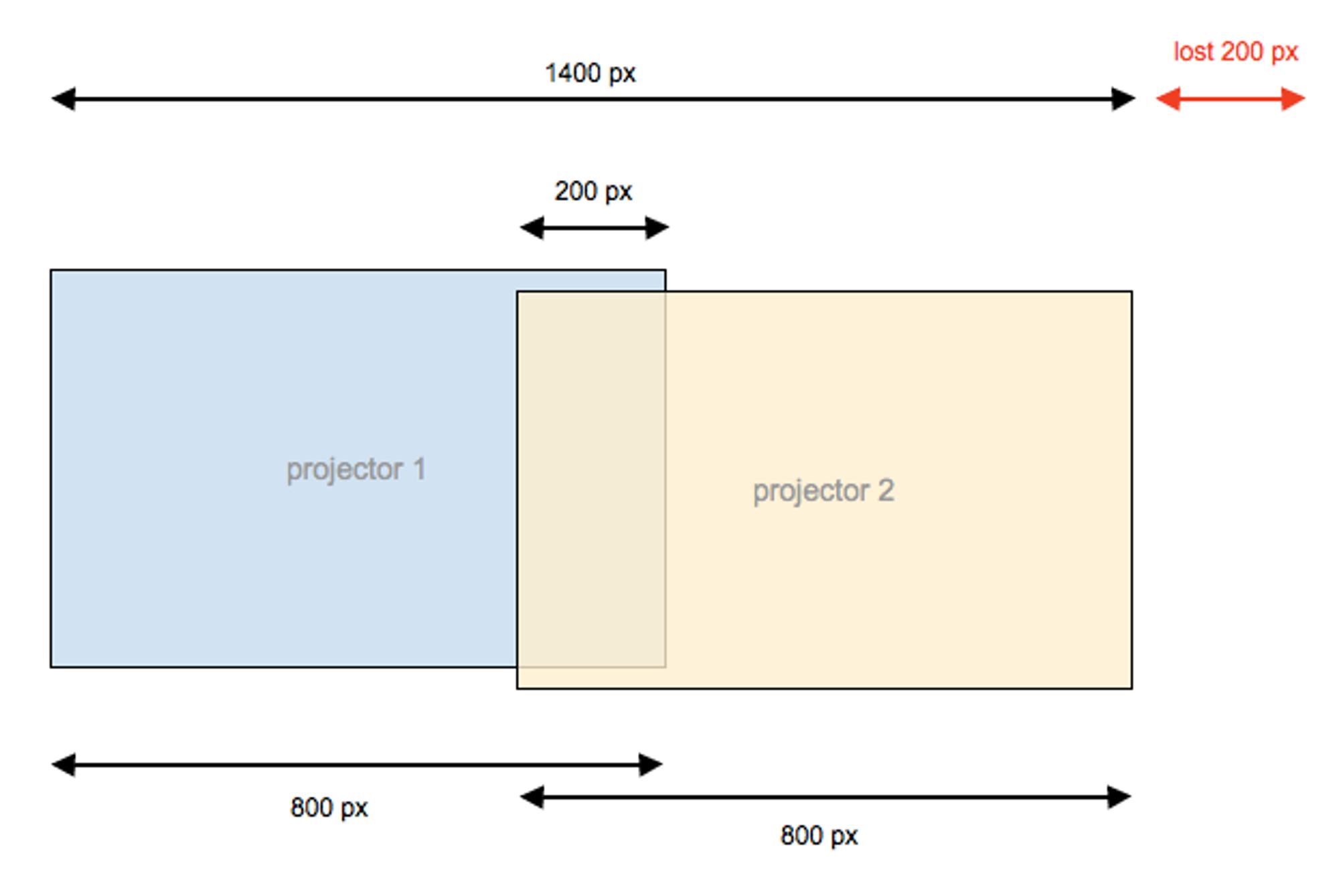 They might be side by side with an overlapping surface of more or less 5/10% of the global surface. Here we took 40 pixels. What you see here is the black light of the projectors, the best their contrast will be, the less the black light will be visible.
