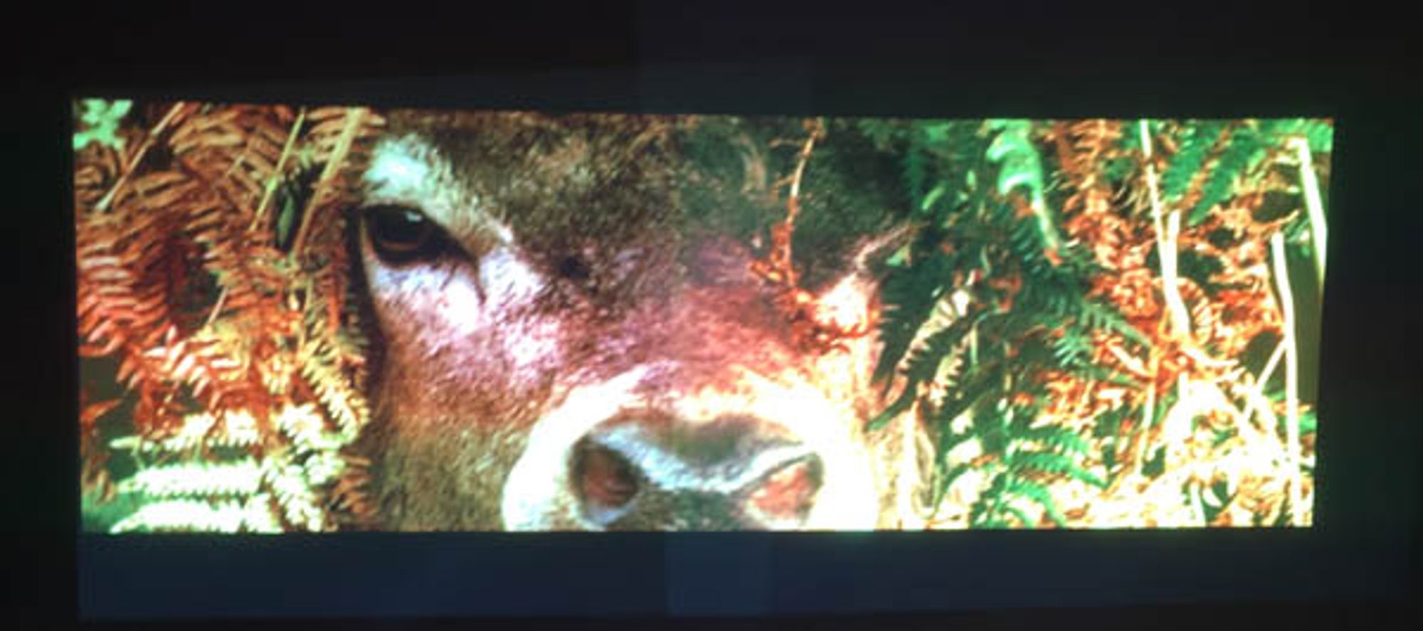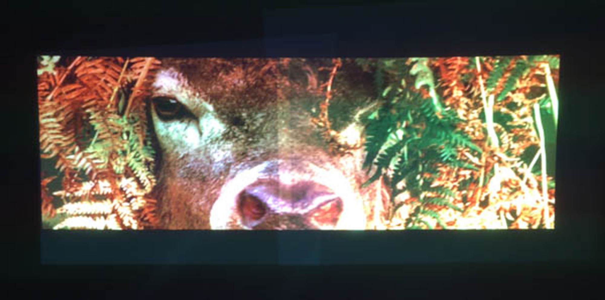 The principle is simple. The 2 video projectors overlaps a bit, so they blend together :