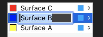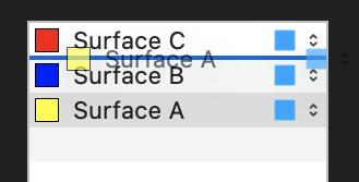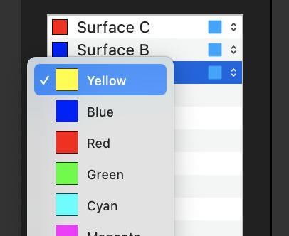 On the right of the tab, you can find a list of all the surfaces of the selected canvas :