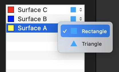 The surface’s position can be changed by dragging its shape in the workspace view, or dragging its corners :