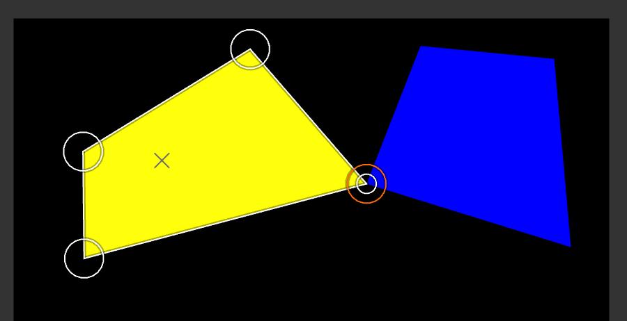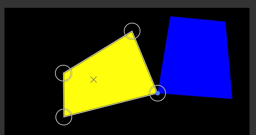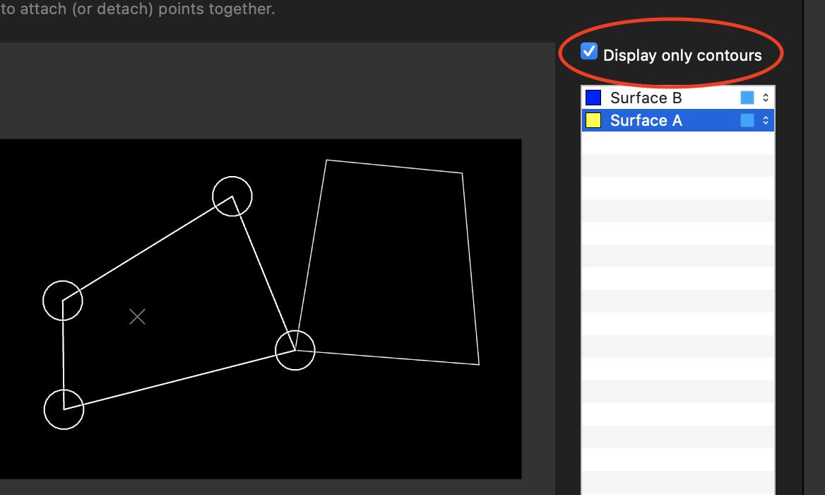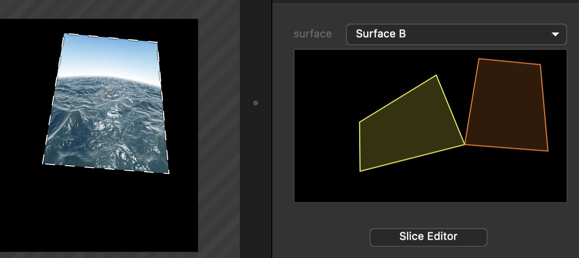 If a surface’s mapping corner snap the mapping corner of another surface they will be attached together. The two corners will now move altogether as a same corner. They can be detached by clicking on them while holding the SHIFT key pressed.