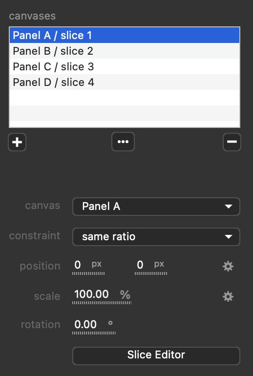 Of course, you can use only a portion of your canvas by clicking the slice editor button, just as you do with layers. You can even create several slices for the same canvas.