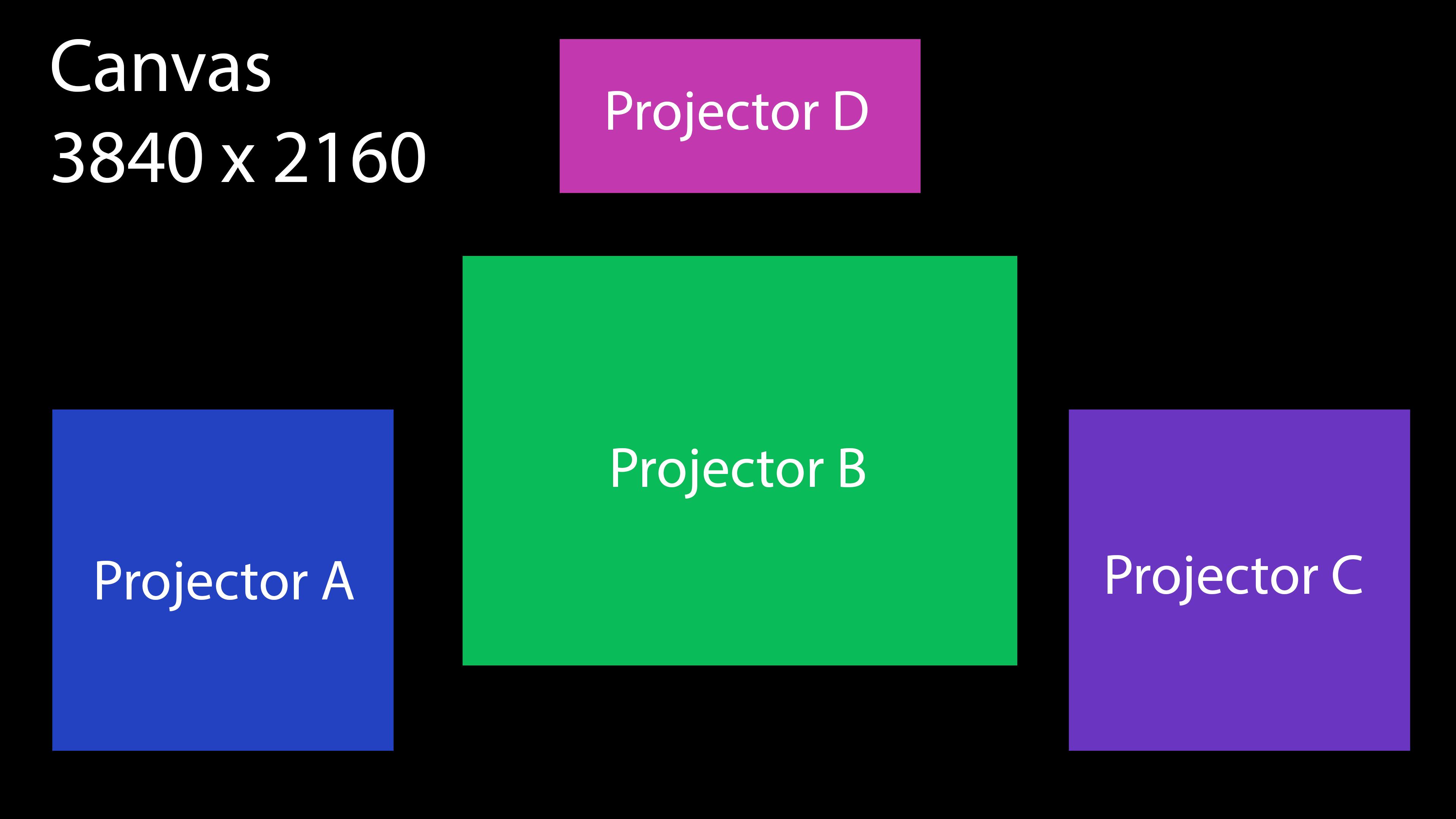Since every projector has to display a portion of your canvas, you need to accurately manage slicing as below :