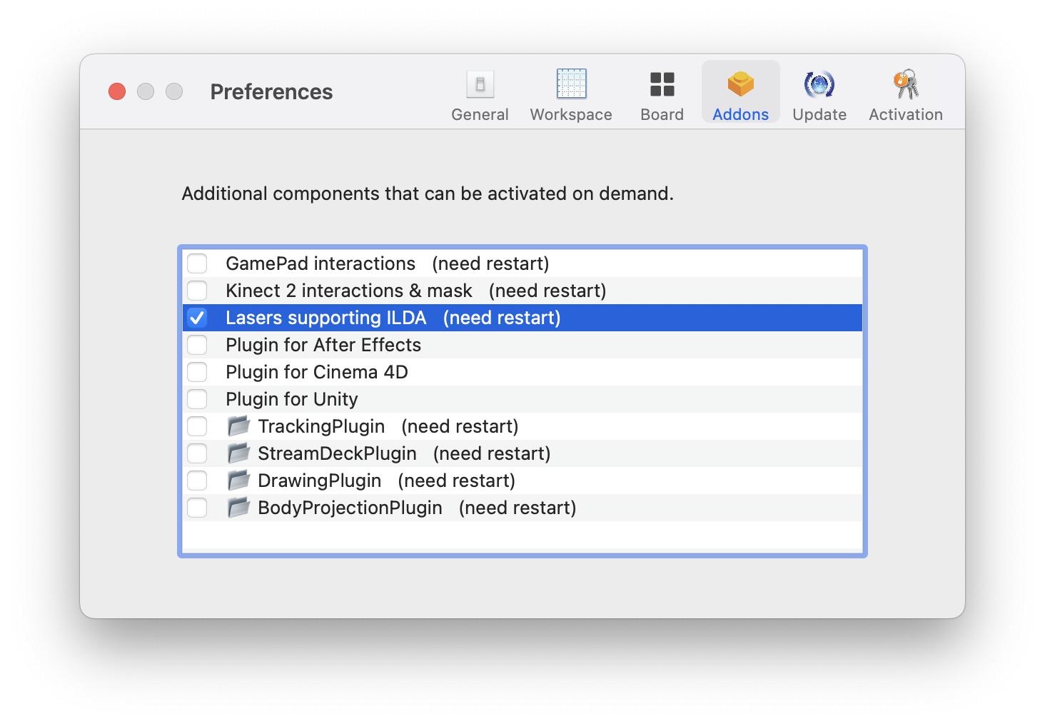 As mentioned earlier, you will need a DAC to control the laser from your computer. The Etherdream, Helios, ShowNET and LaserCube USB/Wifi DAC are supported.
