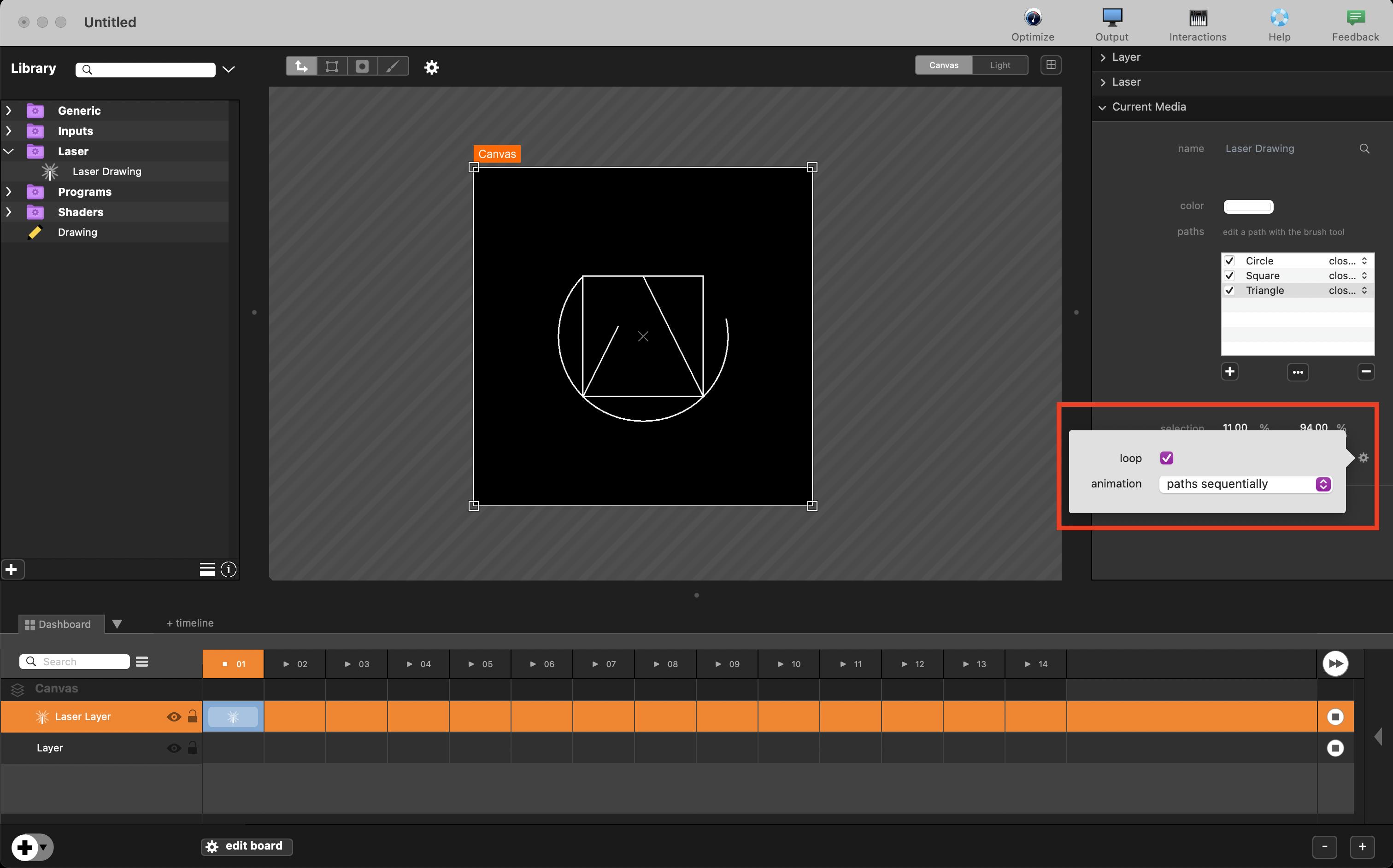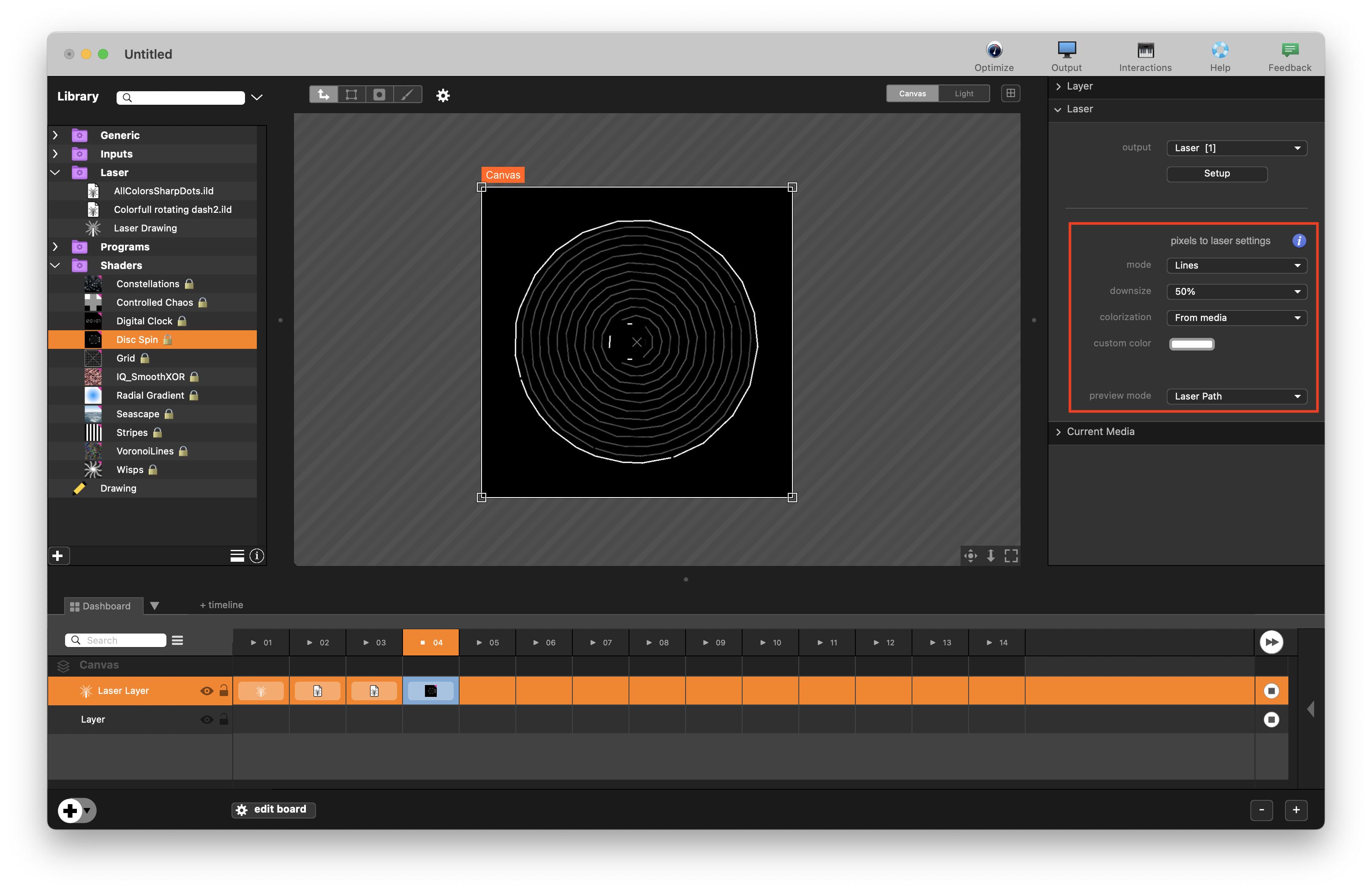 Any media placed in this layer will not be rendered on your video output. Instead, it will be sent to a laser output as mentioned earlier. But you can still see the result in the workspace.