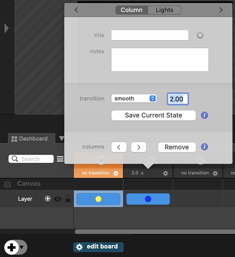 Now, each time you launch this column, Millumin will automatically fade with the previous column.