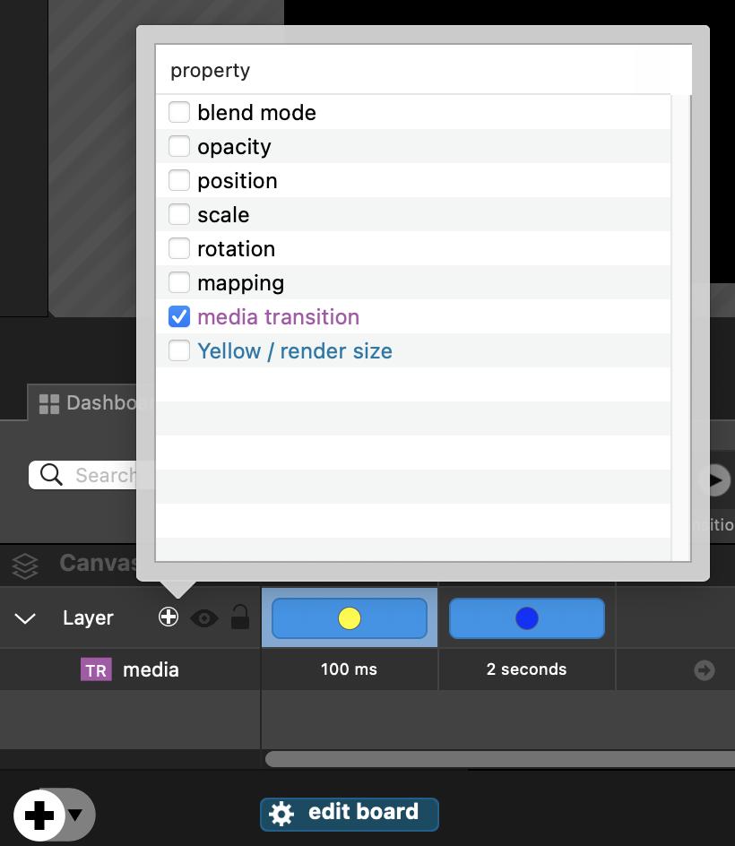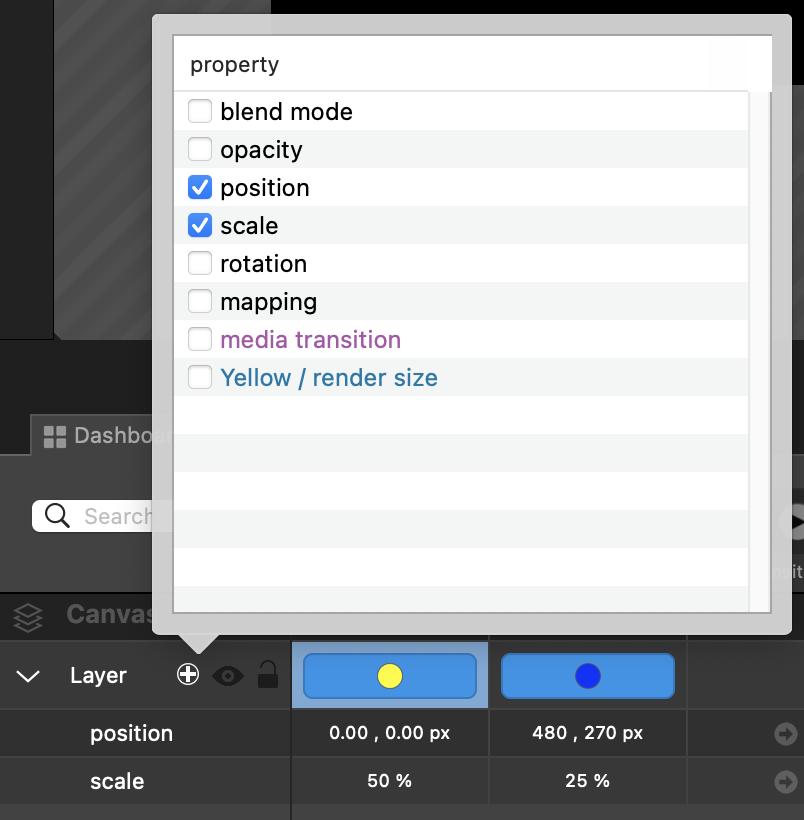 More advanced animations can be created in boards with states, and in timelines with keyframes. These animations always target a certain property of your layers, media, effects, ...