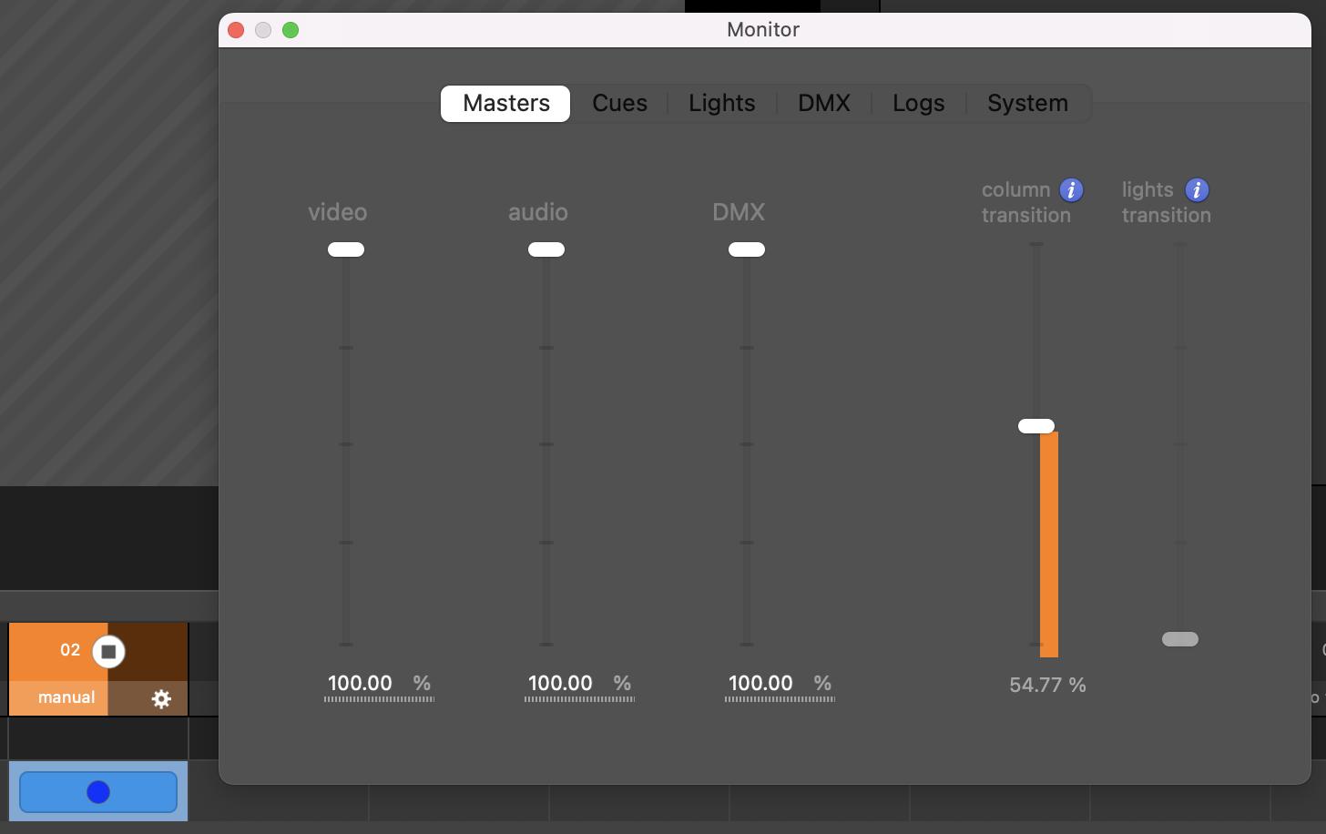 If needed, you can set a transition as manual to control its progress (with a MIDI controller for example) :