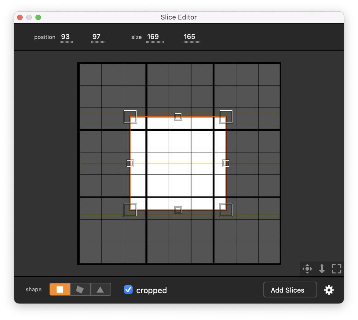 - The shapeoption allows you to change how you edit the slice (as a rectangle, quad or triangle).