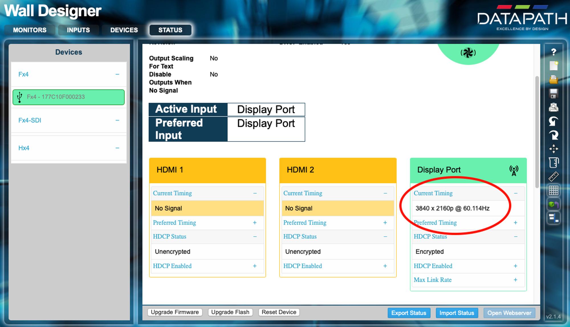 Also, when using this method, it is needed to configure each HDMI output for each Fx4 in Wall Designer, so it follows this sync-signal. See image below :
