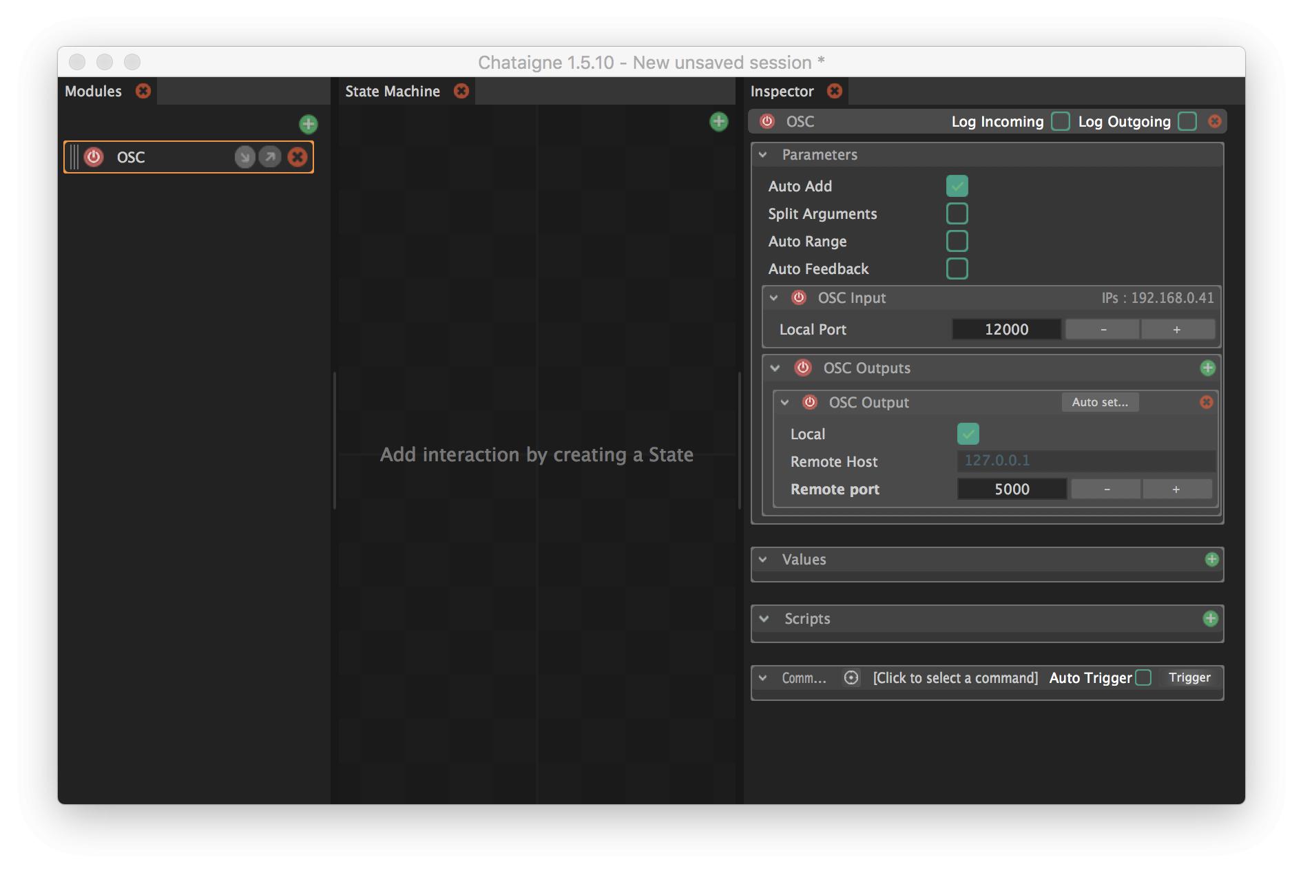 For this tutorial, we will use Chataigne, so be sure to download it (version 1.6 minimum, so it supports spaces in OSC addresses). The last section covers 2 alternatives solutions.