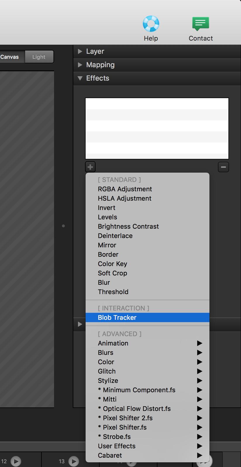 In your Millumin layer, go to the effect properties and add blob tracker effect :