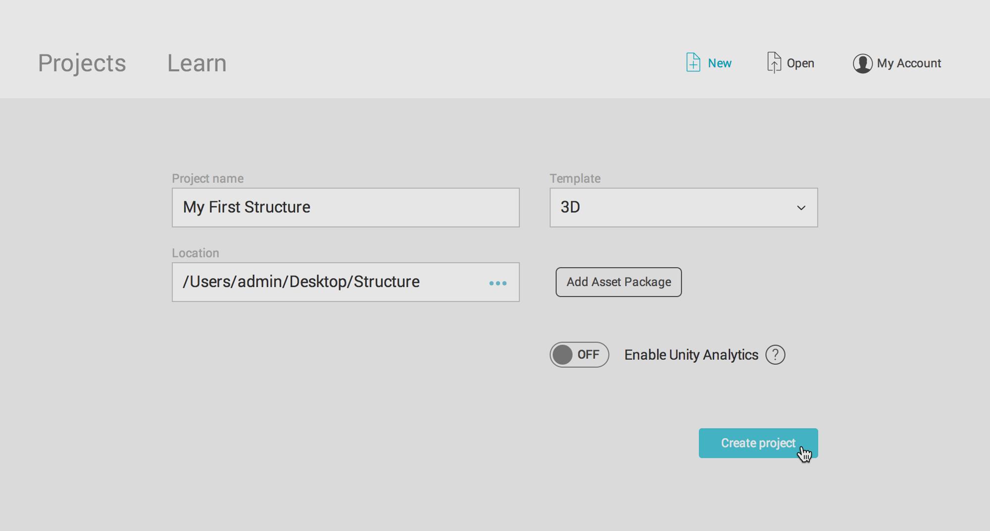 Let's start by creating an empty Unity project. Open Unity, create a new project (File → New Project) and select the 3D template :