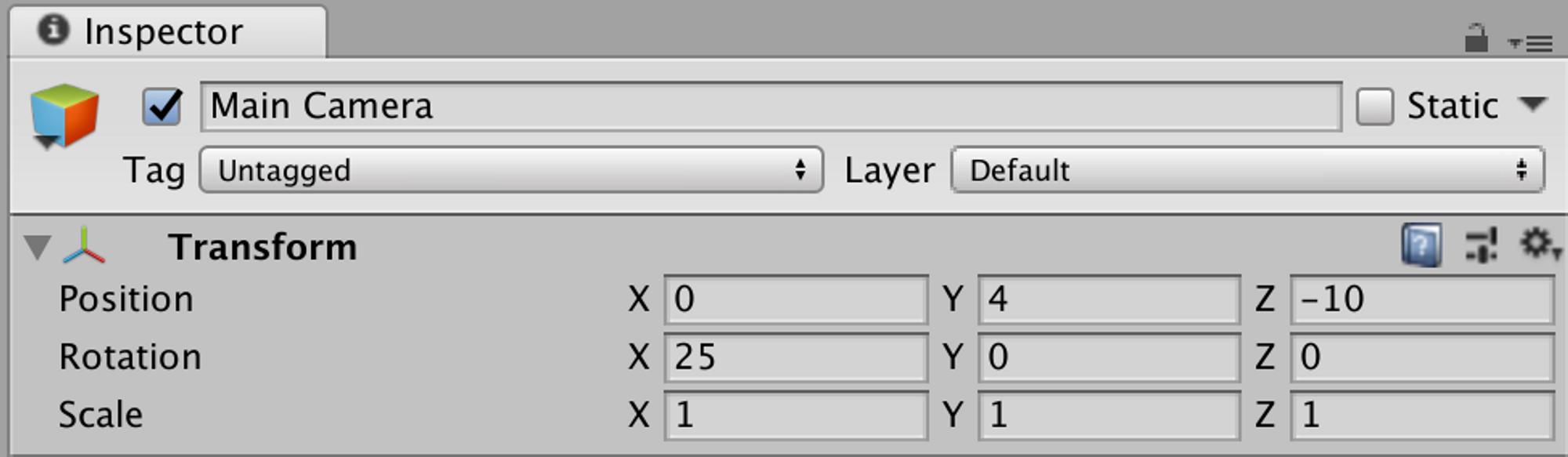 Let's make the top face visible by moving the camera at 4 on the Y axis and rotating its X axis of a 25° angle :