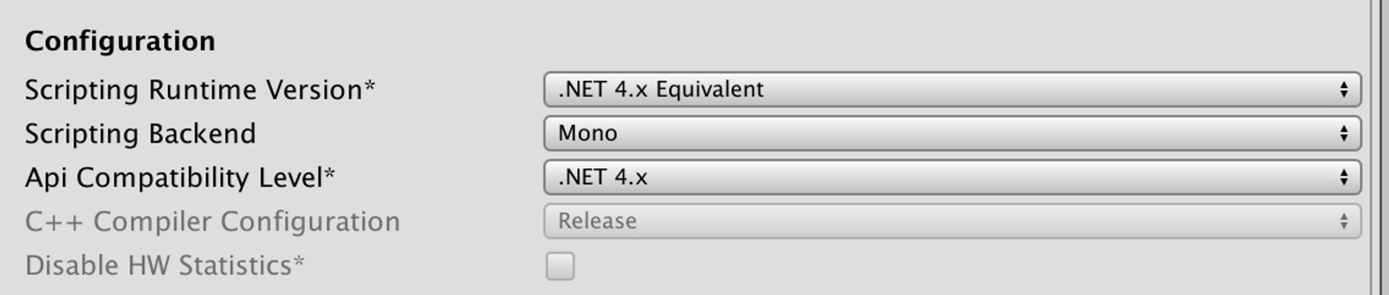 Go to File → Build Settings → Player Settings → Other Settings and set the Scripting runtime version to .Net 4.x Equivalent :